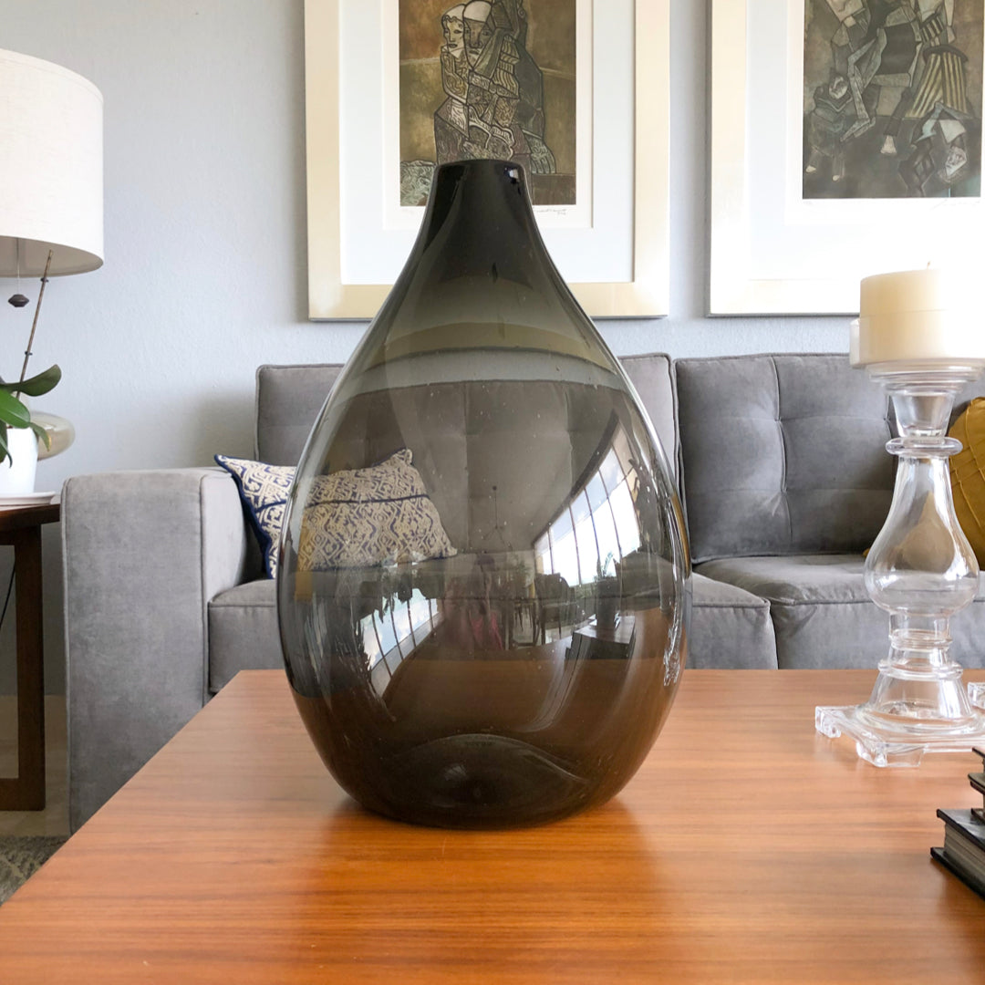 Florero Gota color Humo de Vidrio Soplado