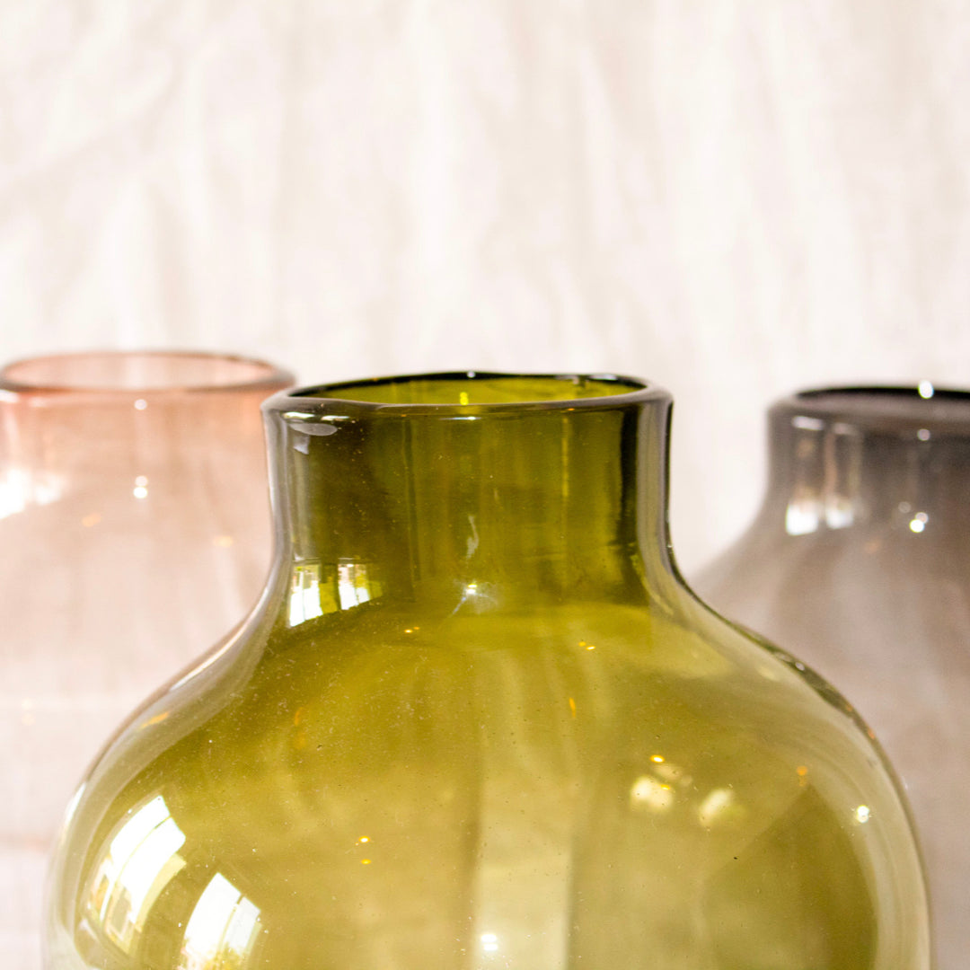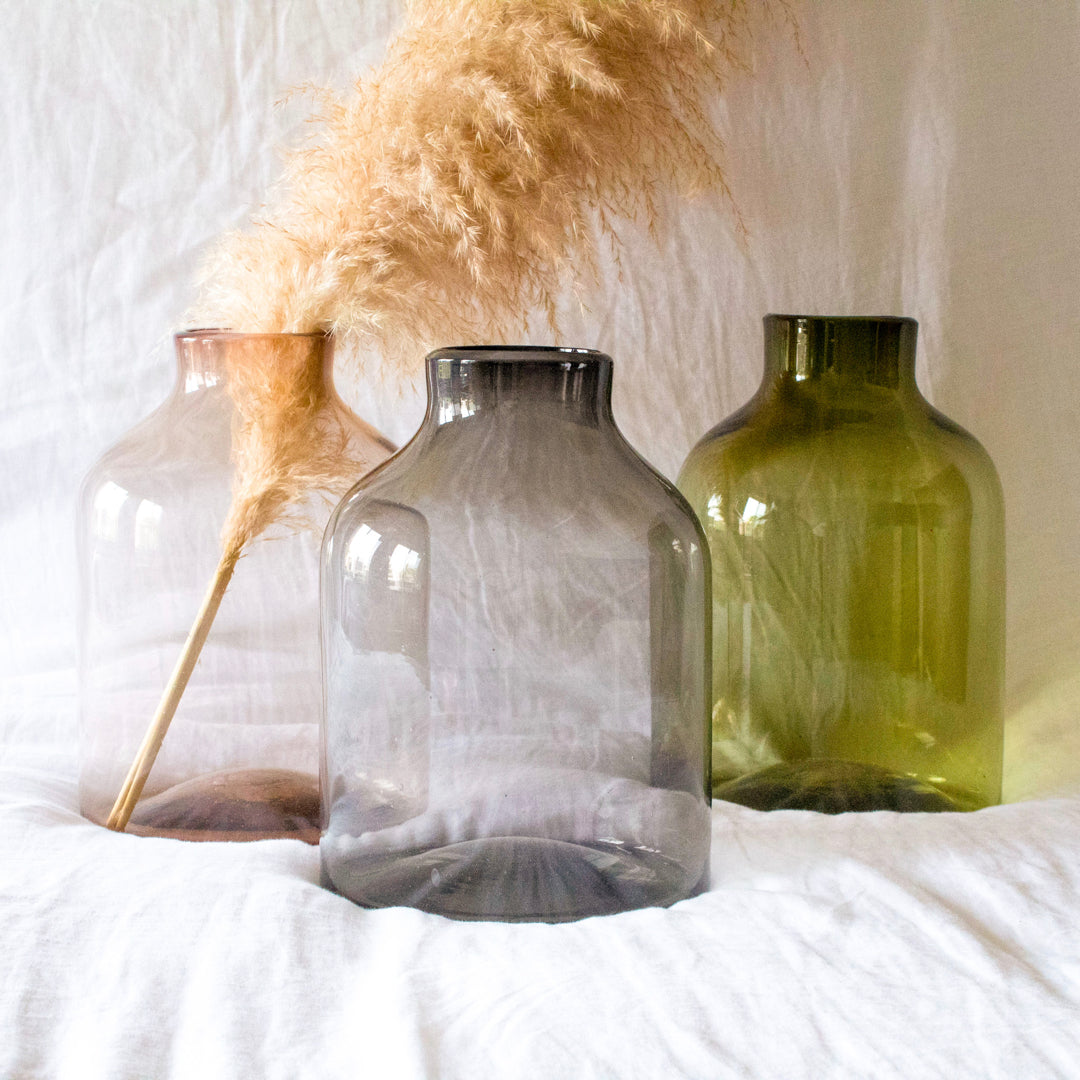Florero de vidrio soplado de boca ancha. Hermosa combinación entre lo rústico y moderno. 100% de vidrio soplado hecho artesanalmente en México.