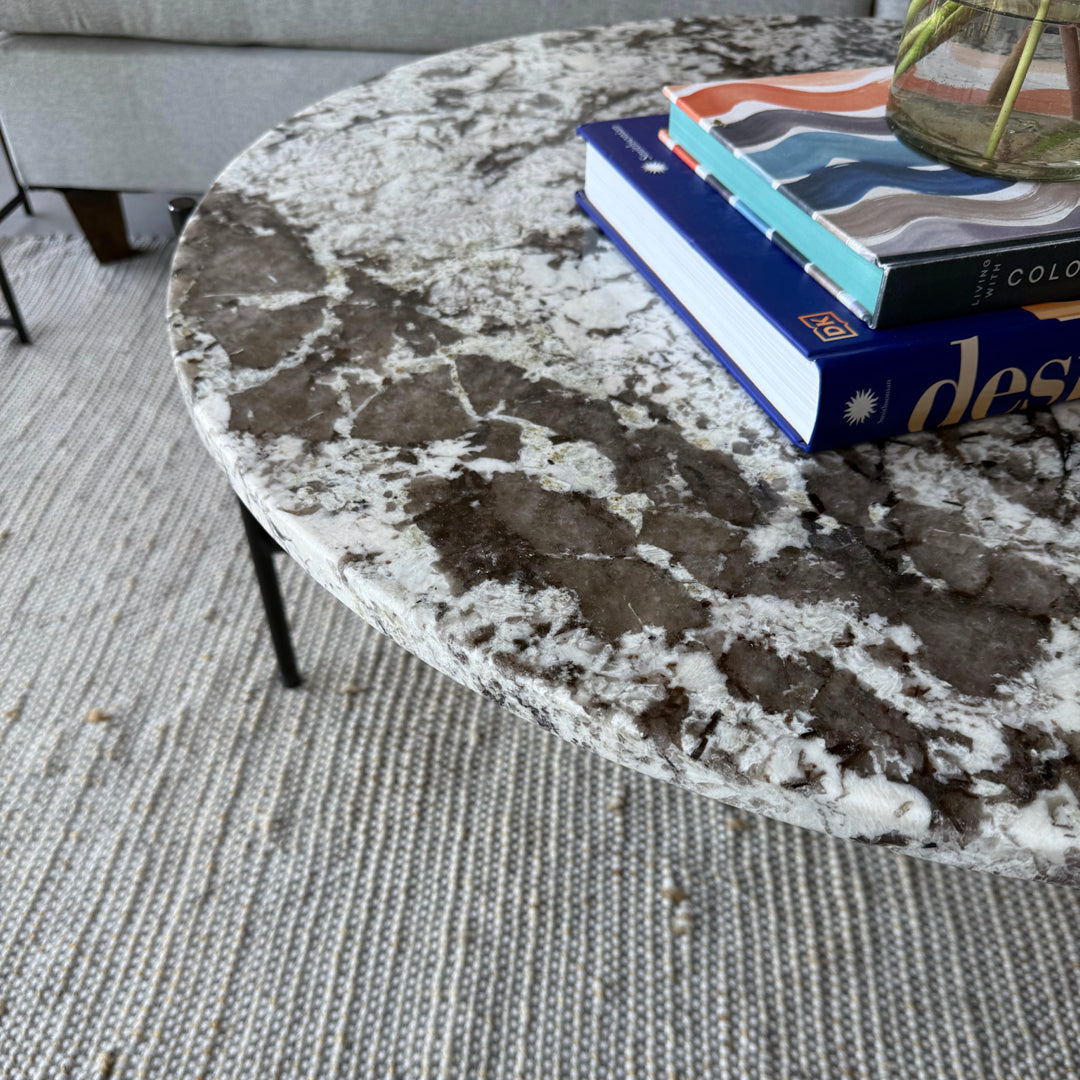 Cada pieza es única, resaltando las vetas naturales y los tonos suaves del granito Arctic White, que se adapta a cualquier estilo de decoración. Ideal para salas, terrazas, balcones o espacios de reunión. Esta mesa no solo es funcional, sino también una obra de arte hecha a mano con la más alta calidad.